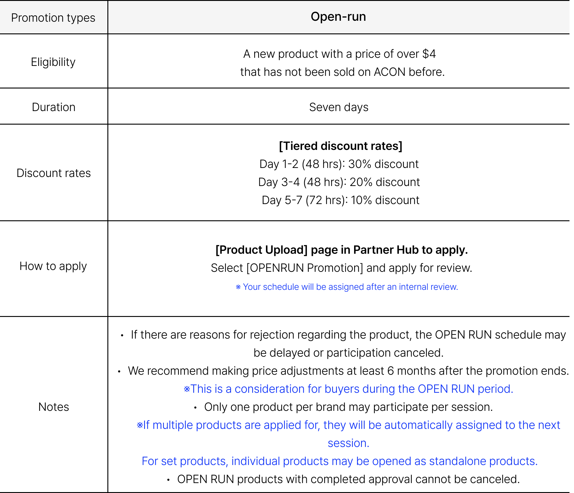 You cannot conduct open-runs during special promotion periods, such as planned promotions.