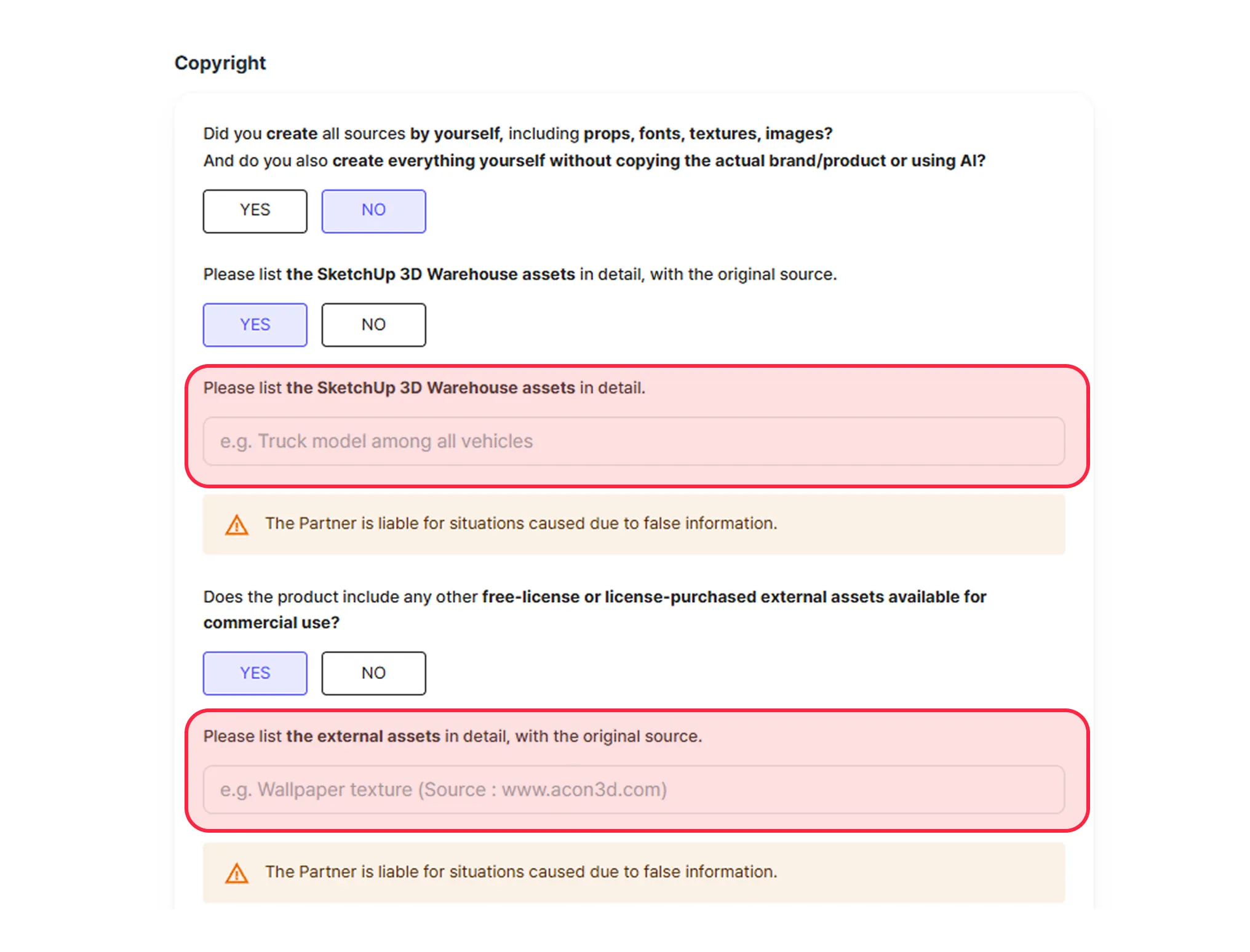 If you have obtained permission to use a trademark for commercial purposes, you must clearly state this fact in the product details.