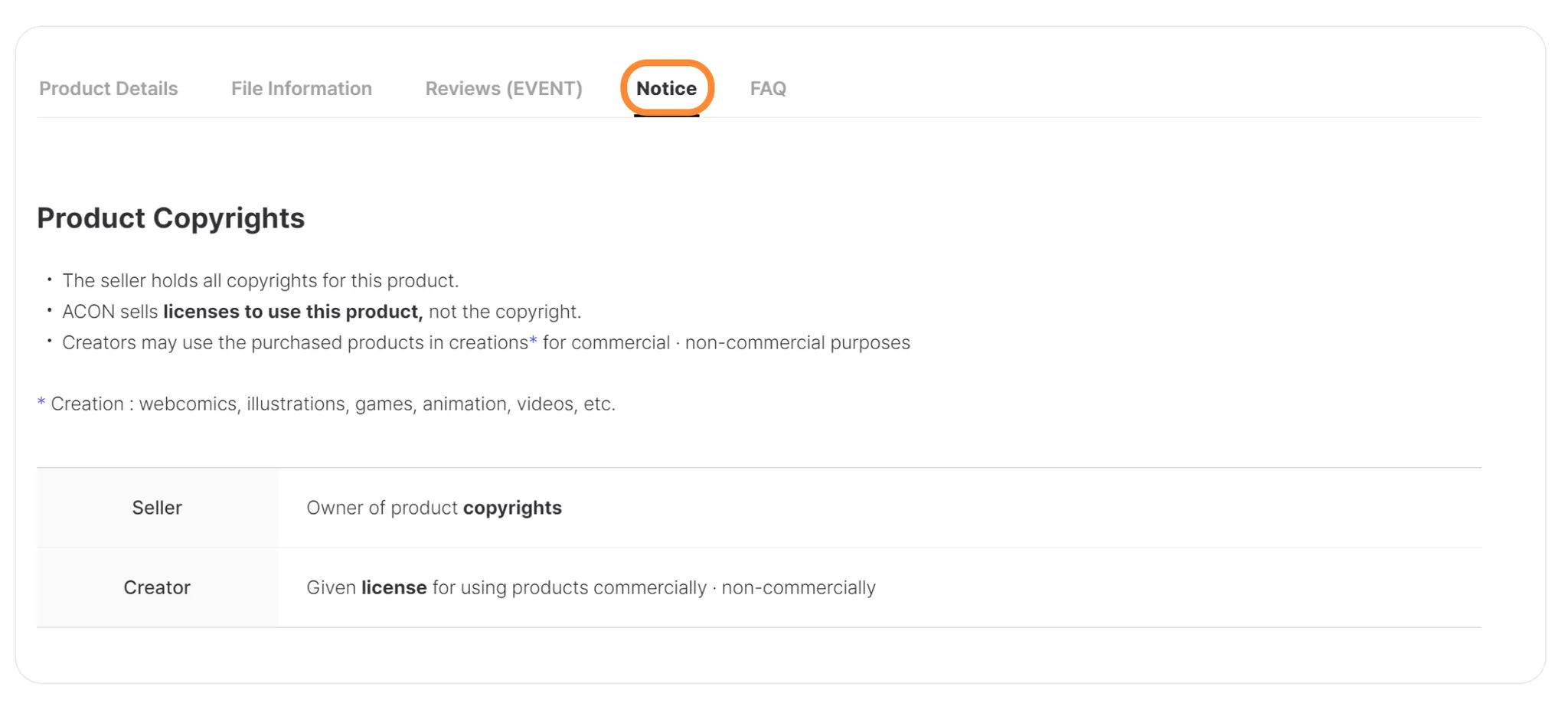If all product files share the same extension and software compatibility, separate notation is not required. You can verify product file composition and size under the [File Information] section on the ACON product page.