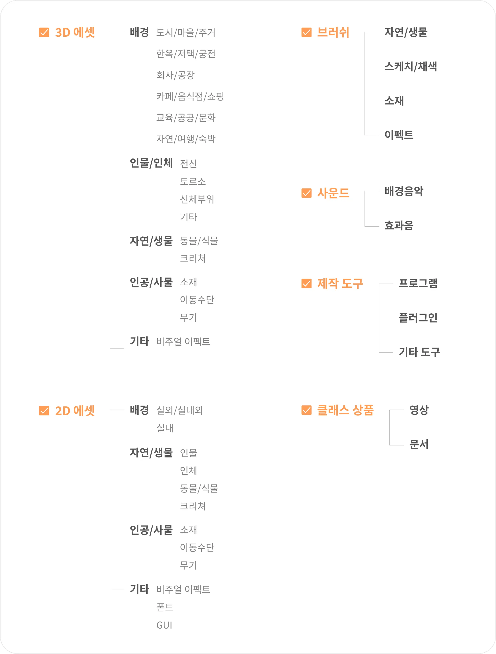 말풍선, 프레임, 효과선, 효과음 등의 3D, 2D 상품은 비주얼 이펙트로 등록해주세요.