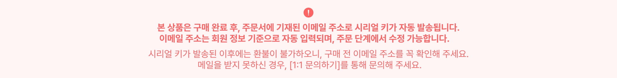 시리얼 키는 상품 구매 시 주문서의 주문자 정보 내 이메일로 즉시 발송됩니다.
