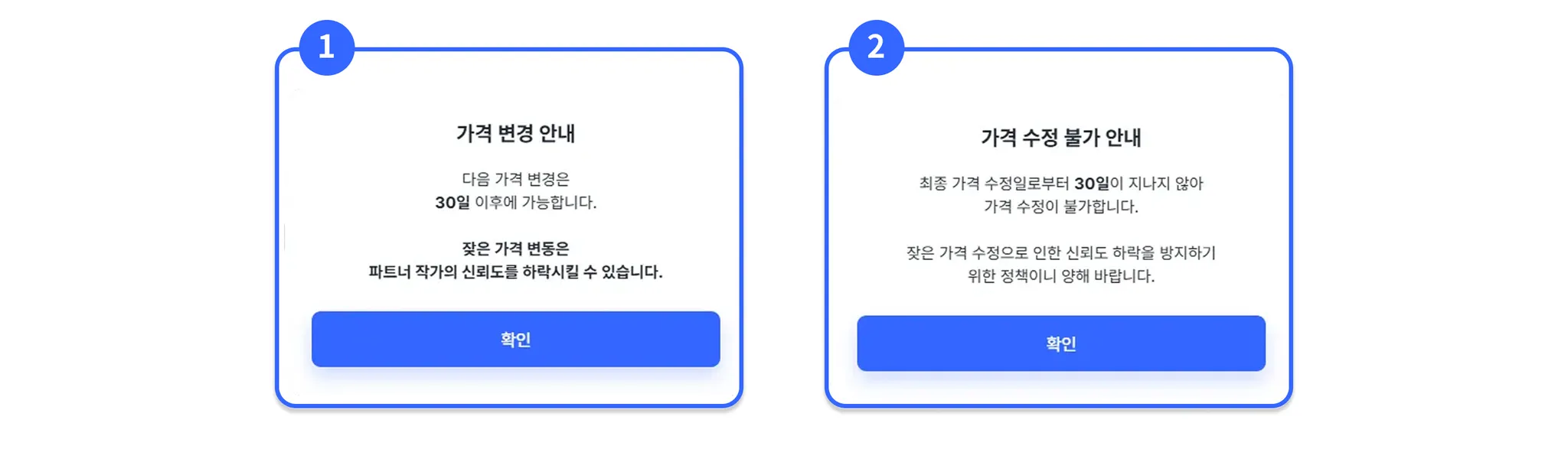 각 알림은 현재 수정 가능 여부와 유의해야 할 사항을 안내하기 위한 것으로, 알림 내용에 따라 다음 단계를 진행해 주세요.