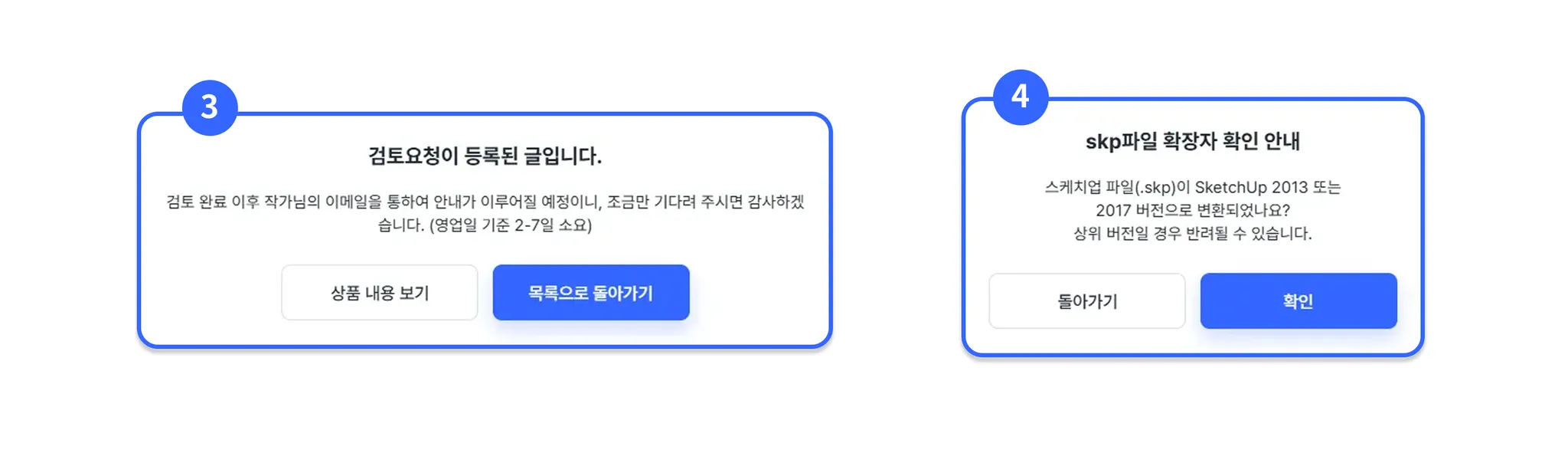 수정 검토는 영업일 기준 7일 이내 완료되며 반려/승인 결과를 메일로 발송해드려요