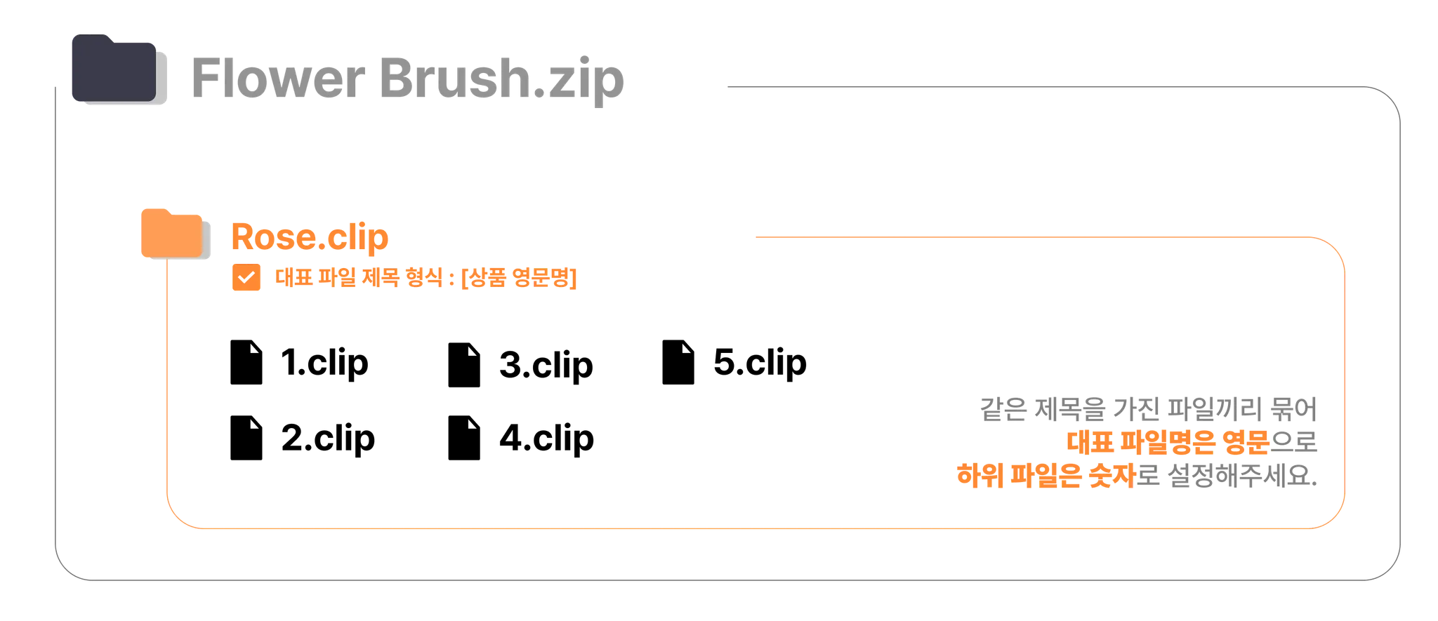 글로벌 창작자들도 상품을 활용할 수 있도록 압축 파일명과, 압축 파일 내 모든 개별 파일명을 영어로 설정해주세요.